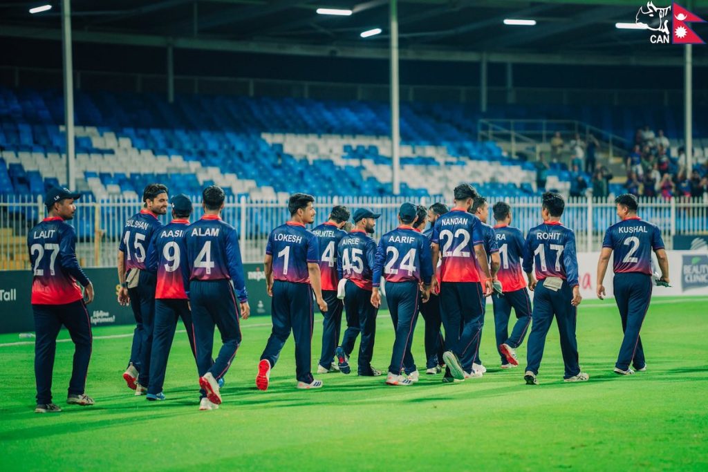 नेपालका लागि कुशल भुर्तेल ३९, कप्तान रोहित पौडेल १९ रन, कुशल मल्ल १२ र आरिफ शेख ६ रन बनाएर आउट भए। गुल्शन झा १० र आदिल आलम ३ रन बनाएर रनआउट भएका थिए।