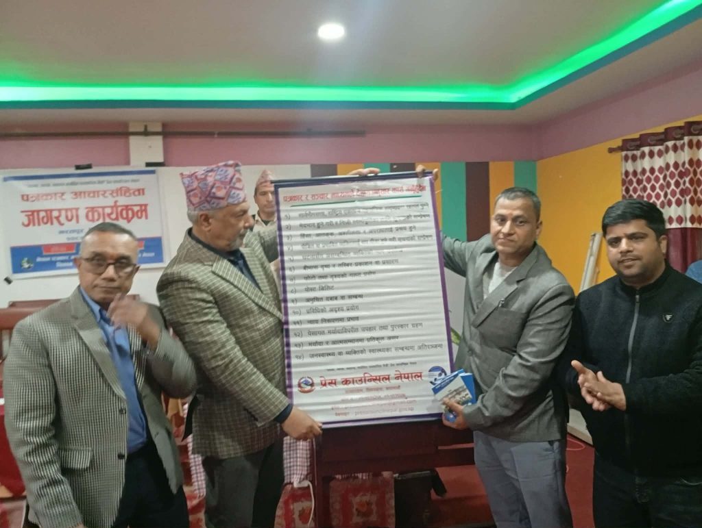 प्रेस काउन्सिल नेपालद्वारा आइतबार चितवनमा आयोजित पत्रकार आचारसंहिता जागरण अभियान कार्यक्रममा बोल्दै अध्यक्ष आचार्यले पत्रकारिता पेशालाई मर्यादित, जिम्मेवार र व्यवस्थित बनाउन काउन्सिलले ठोस कदम चाल्ने बताउनुभयो।