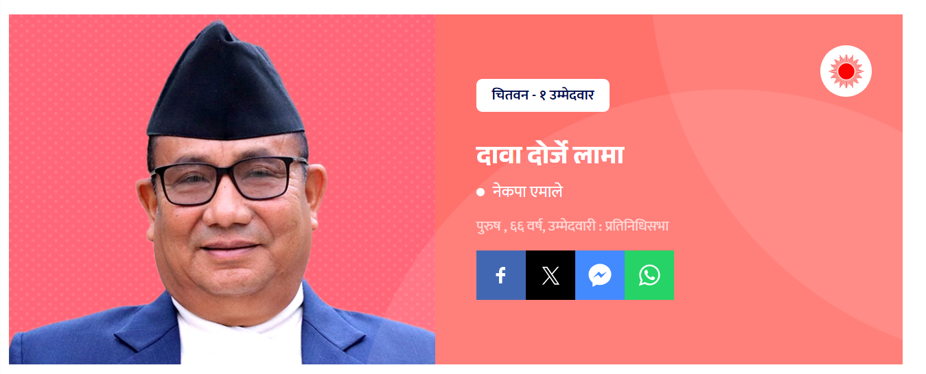 नेकपा एमालेले चितवन क्षेत्र नम्बर-१ मा दावा दोर्जे लामालाई उम्मेदवार बनाएको छ । २०१६ सालमा मकवानपुरको काँकडामा जन्मिएका लामा २०३४ सालमा नेकपा (मार्क्सवादी) मा आवद्ध भएका थिए ।